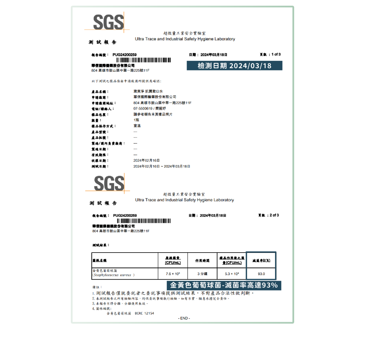 漱爽淨檢驗報告